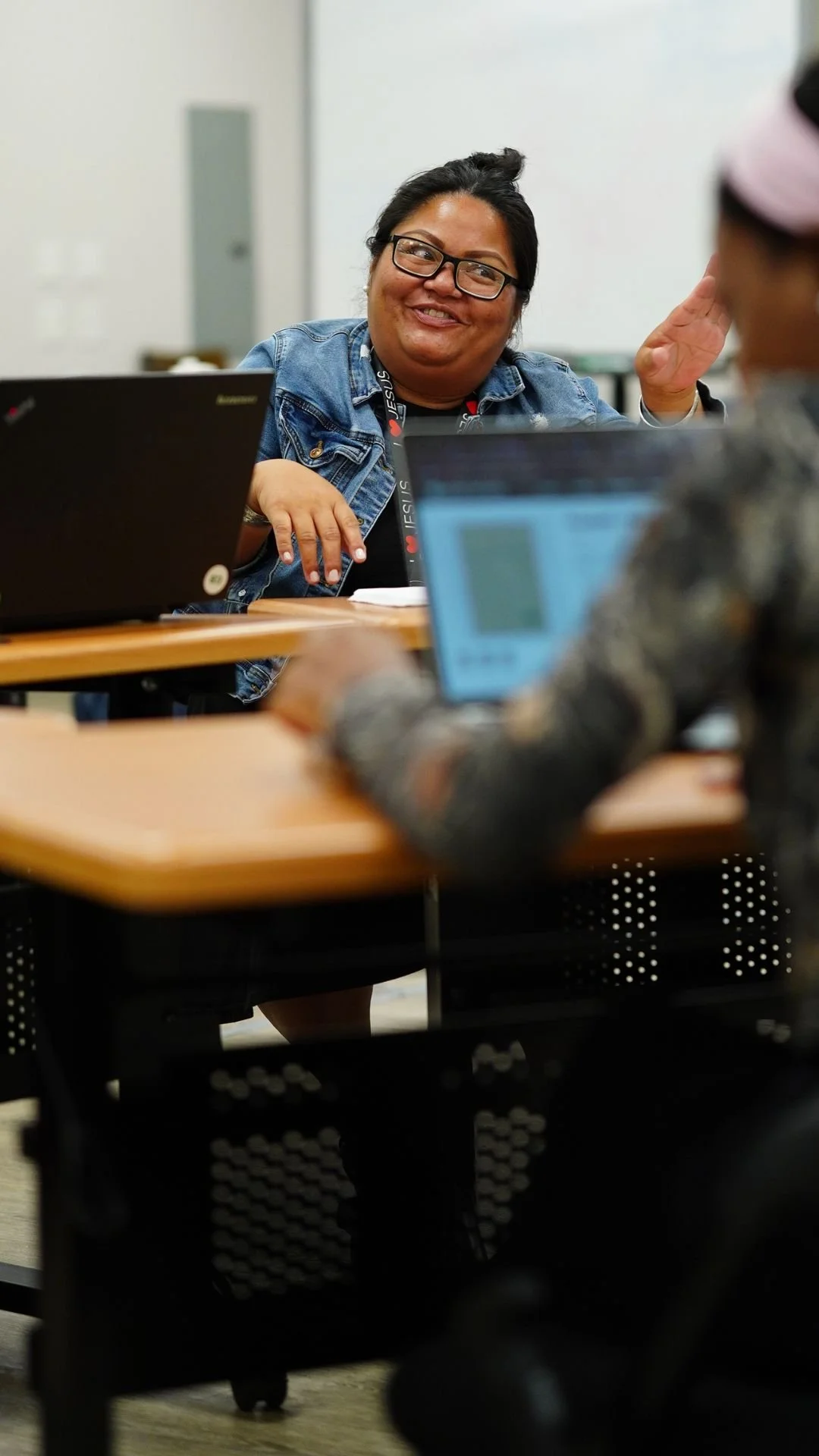 New student in a group discussion in our Character Formation class